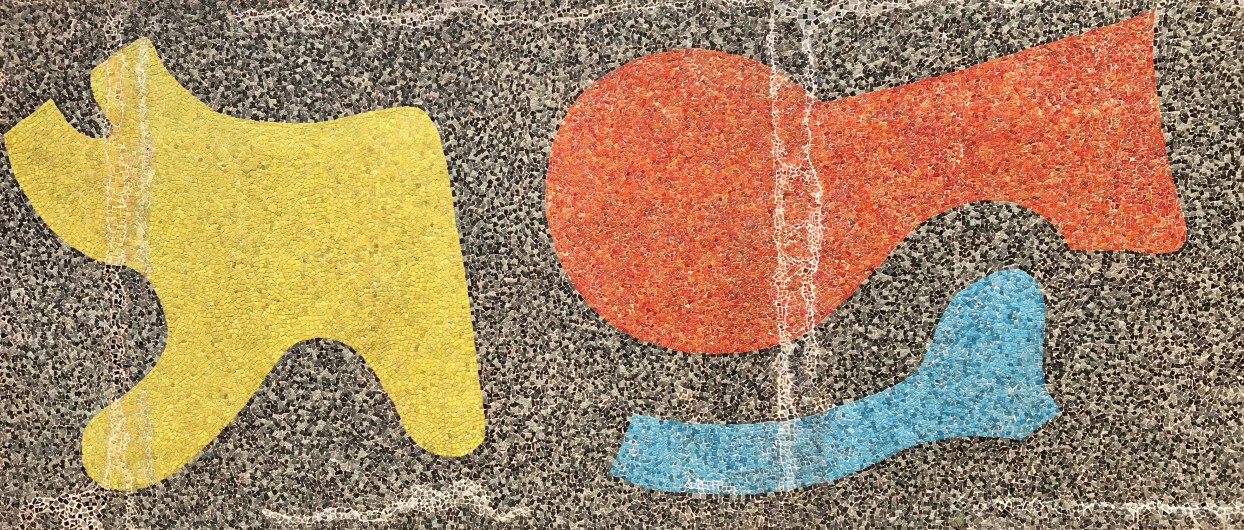 No se conoce su nombre ni el artista que lo diseñó. Sin embargo, ha acompañado a Ciudad Universitaria desde sus inicios en 1952. Dieciocho figuras abstractas sobre un fondo gris lo componen y se extiende a lo largo de la fachada norte del Edificio B de la Facultad de Química –aunque originalmente el lugar albergaba a la Escuela de Veterinaria–, quizá por ello un puñado de estudiantes lo ubica en el imaginario universitario como “las amibas”. El mural sin nombre y anónimo de la Facultad de Química