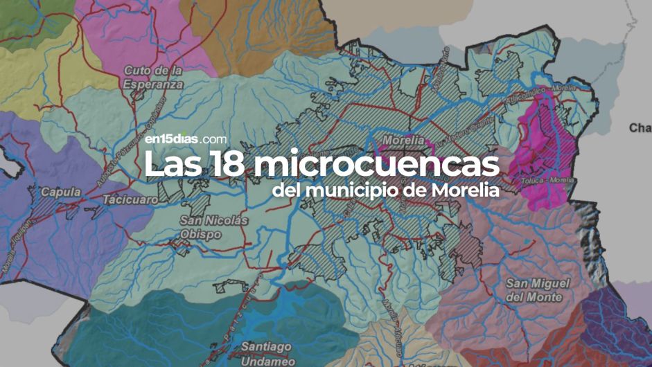 En el territorio municipal de Morelia hay total o parcialmente 18 microcuencas de diferente tamaño. Cinco de ellas se ubican completamente dentro de él y las restantes se comparten con otros municipios.